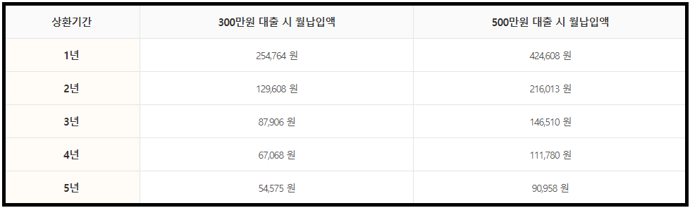 원리금 균등분할 상환방식과 만기 일시상환방식 등